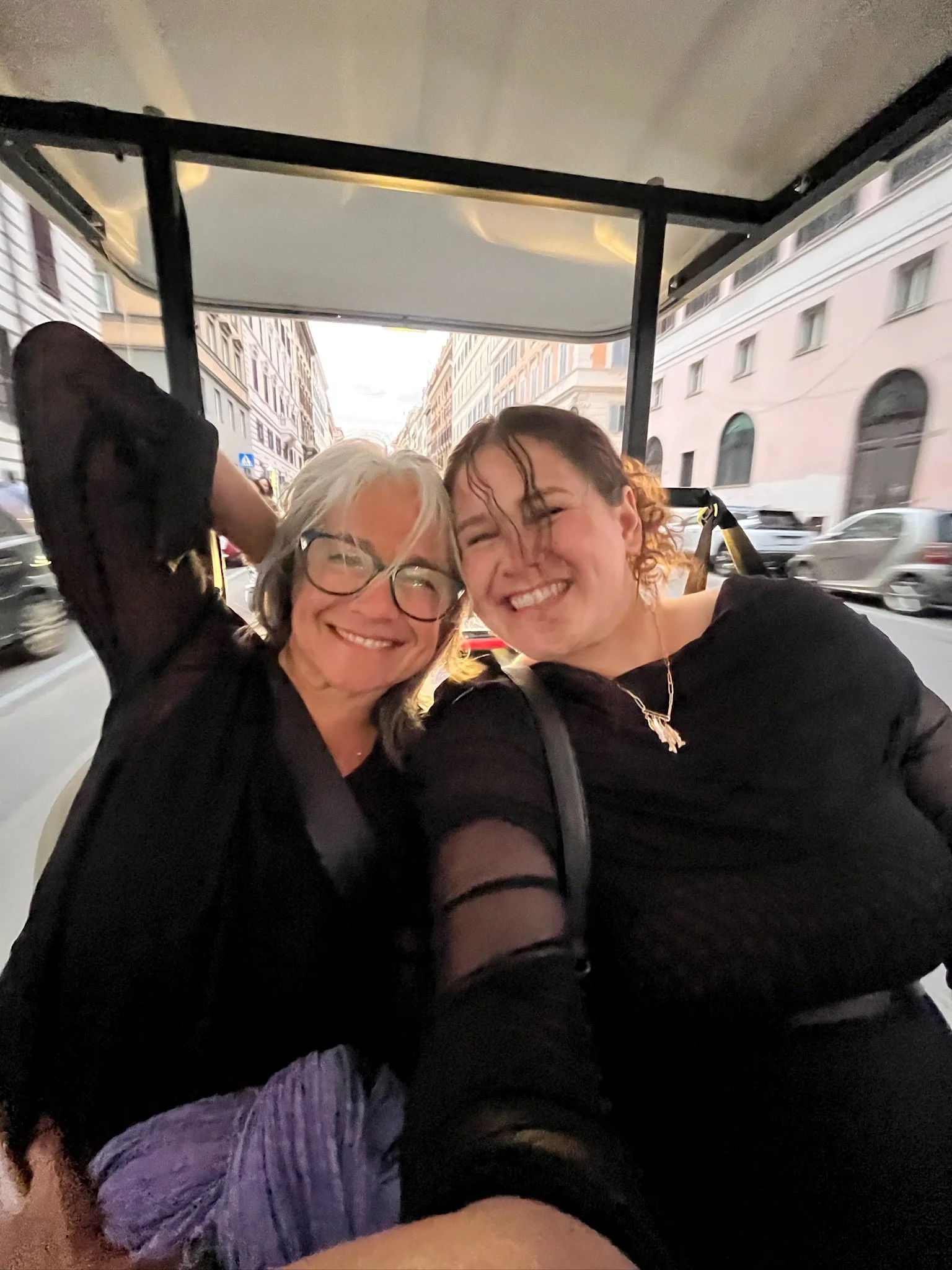 This most recent date was with my daughter, who researched and planned the entire thing. We traveled by plane, train and yes, automobile. We ate, drank, laughed, got lost and found ourselves again. We experienced Rome’s nighttime beauty in a golf cart. Took a Pesto Cooking Class overlooking the Mediterranean Sea. Rented a car and bravely drove from hilly countryside dirt roads to the speedy highways of Rome.